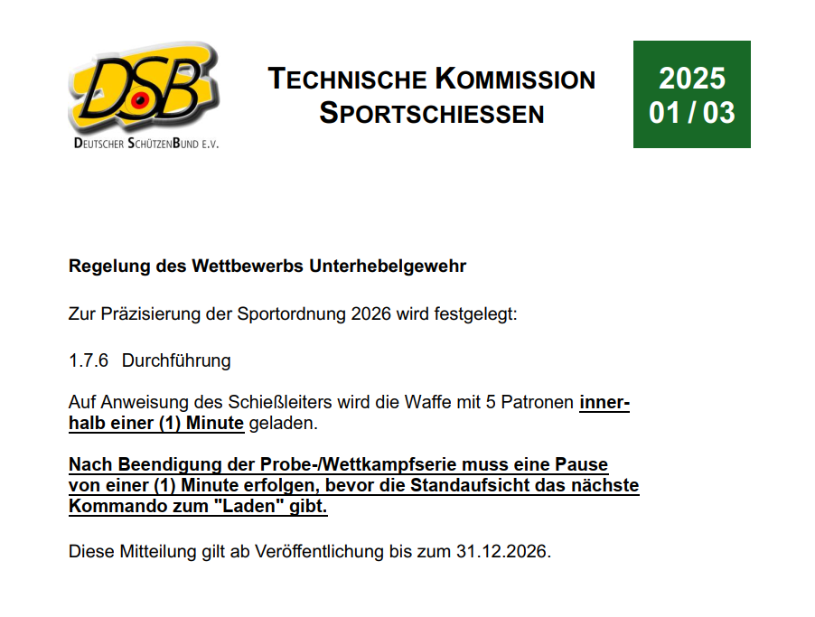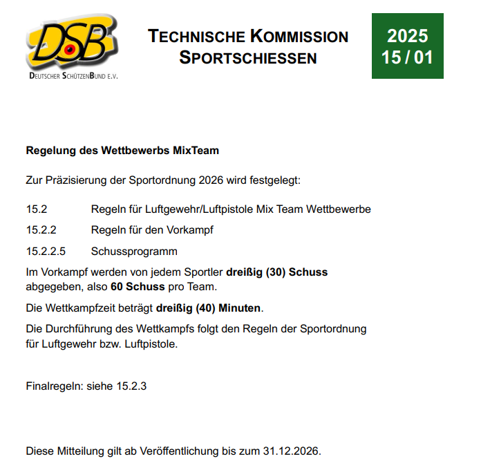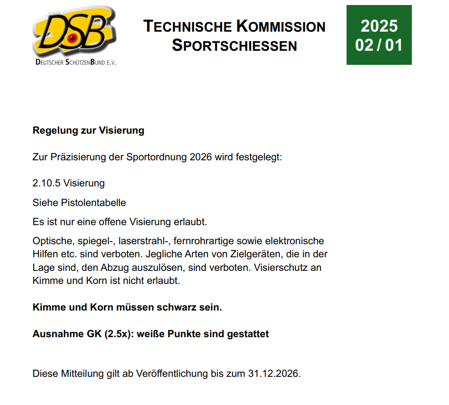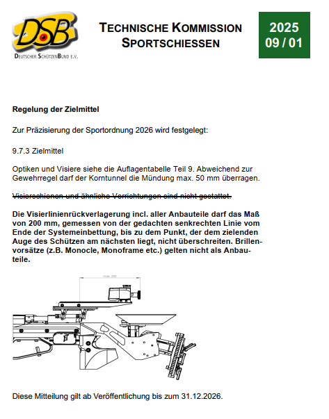 Regeln für Gewehr/Auflage aus Teil 1 und 9 der Sportordnung